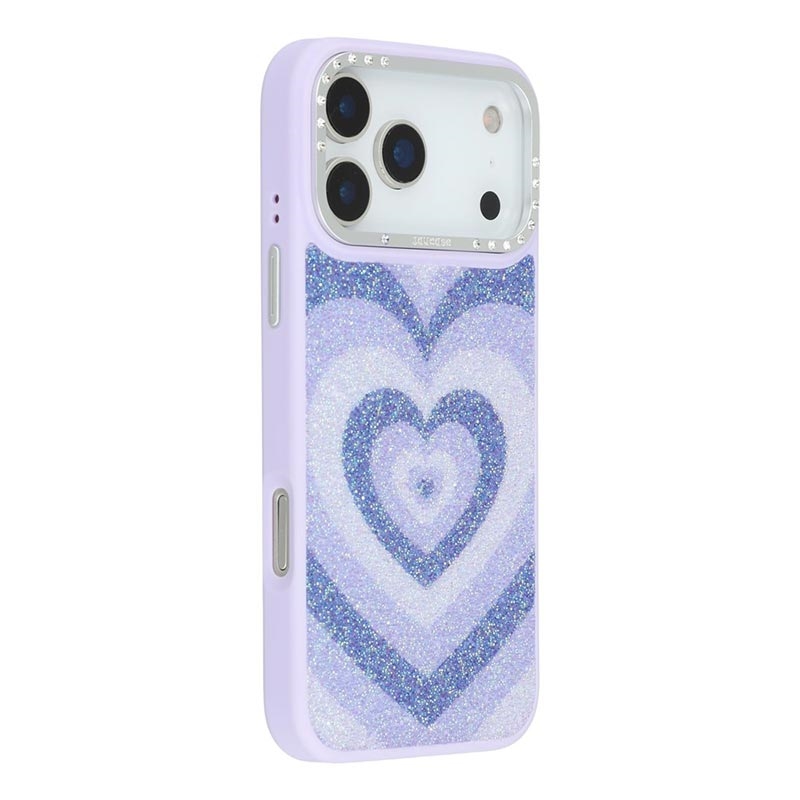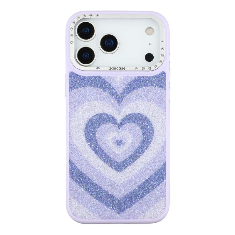 Jaucase Magnetisk hybrid-deksel med hjertemønster for iPhone 17 Pro Max - Polyuretan + TPU + PC med ramme av rhinestone-linse