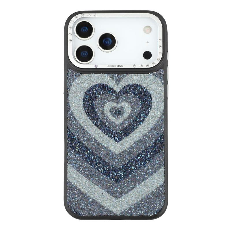 Jaucase Magnetisk hybrid-deksel med hjertemønster for iPhone 17 Pro - Polyuretan + TPU + PC med ramme av rhinestone-linse