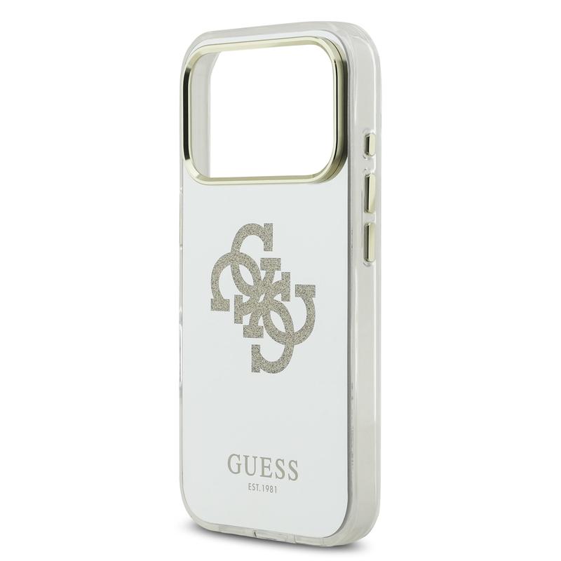 Guess Mirror 4G Glitter Logo Hybrid-deksel for iPhone 17 Pro - MagSafe-kompatibelt PC/TPU-bakdeksel med speilfinish