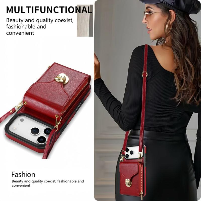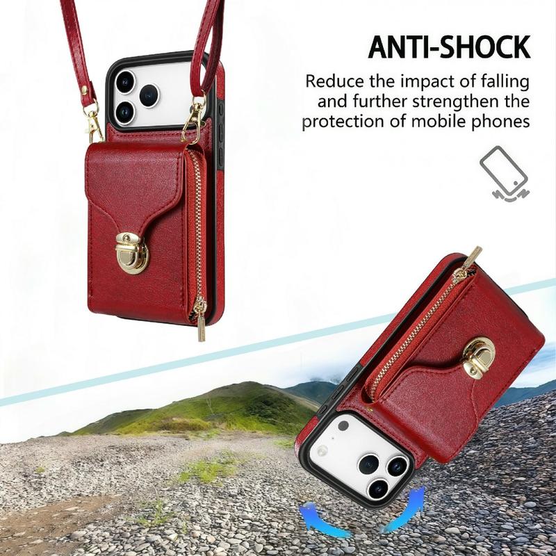 Alt-i-ett beskyttende TPU-deksel med lommebok og stropp til iPhone 17 Pro Max