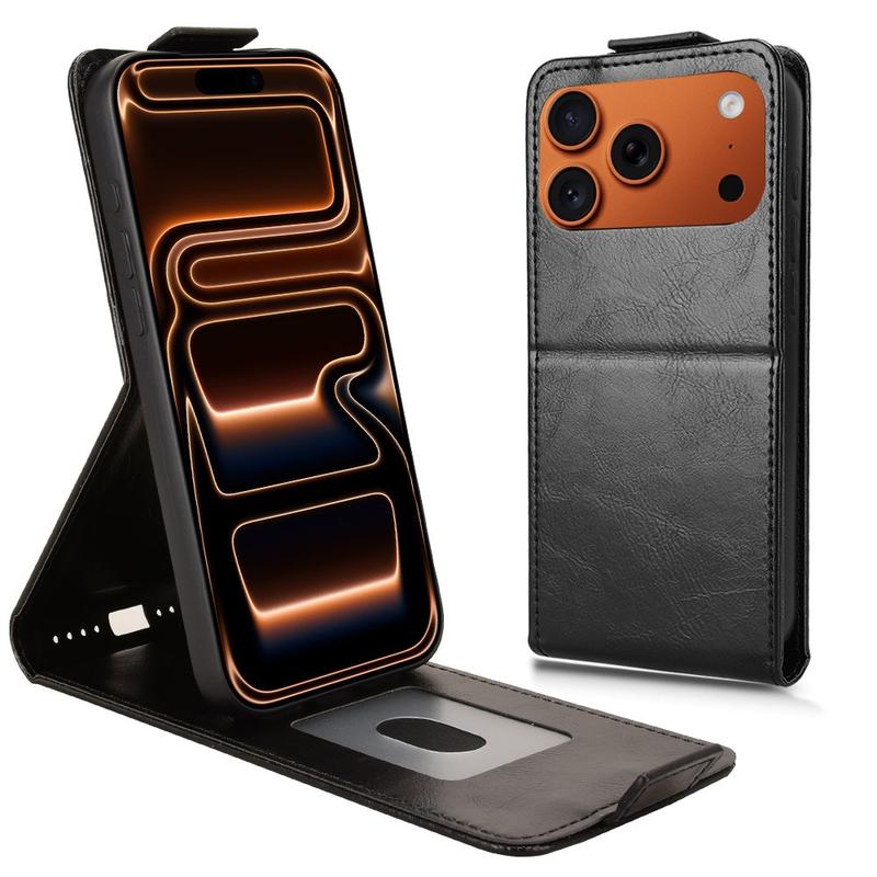 Vertikalt flip-etui for iPhone 17 Pro Max - magnetisk lukking, stativfunksjon, kortholder