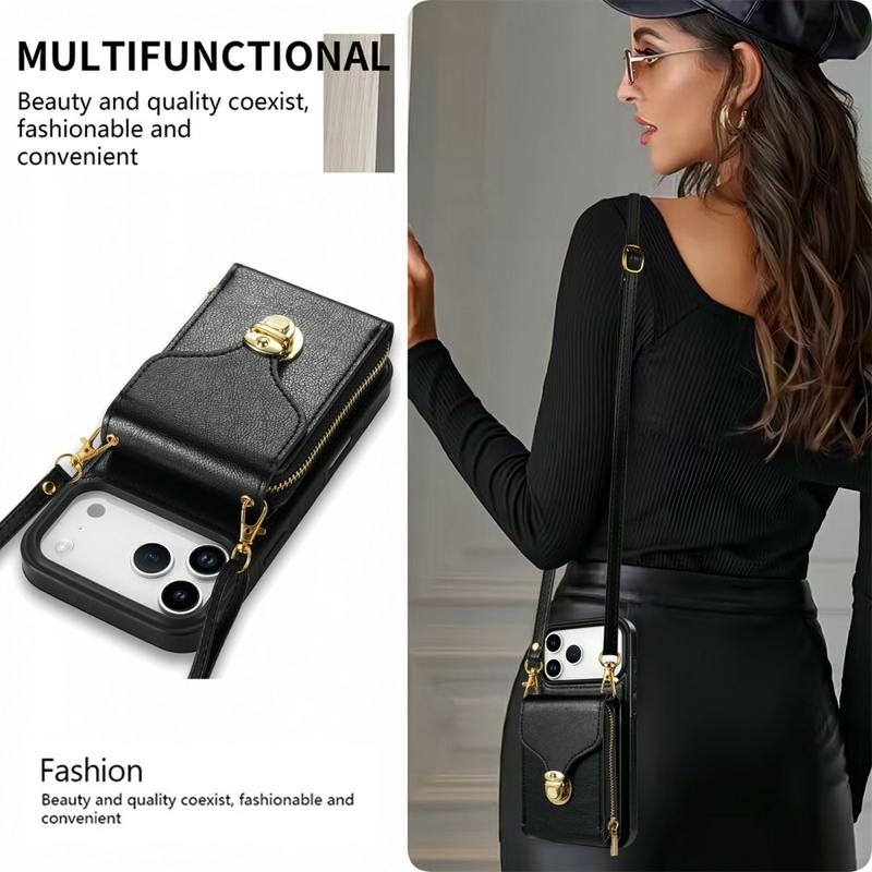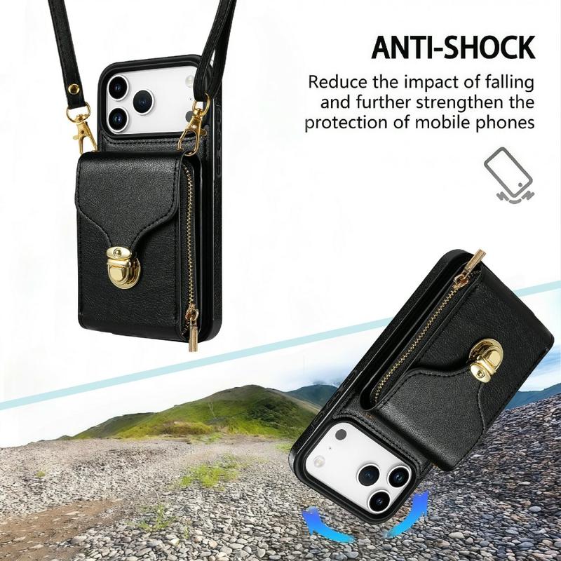 Alt-i-ett beskyttende TPU-deksel med lommebok og stropp til iPhone 17 Pro