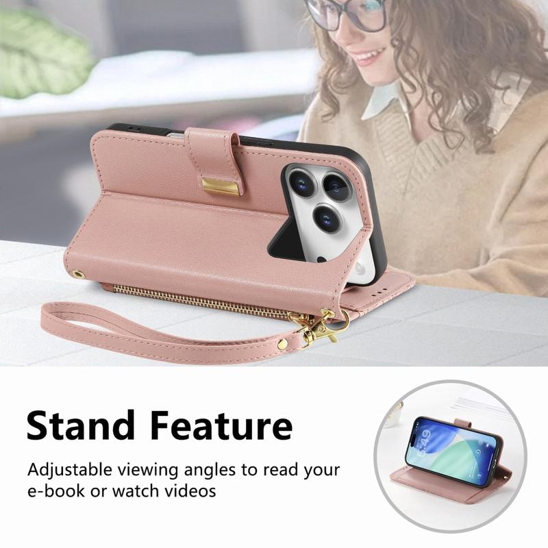 Hold orden på det viktigste samtidig som du gir din iPhone 17 Pro Max et elegant utseende med dette lommeboketuiet med bladmønster. Designet med flere kortplasser, en sikker glidelåslomme og en avtakbar håndleddsstropp, er det den perfekte blandingen av praktisk funksjonalitet og stil. Det er laget av slitesterk TPU og polyuretan, og gir pålitelig beskyttelse samtidig som det fungerer som en fasjonabel alt-i-ett-lommebok.