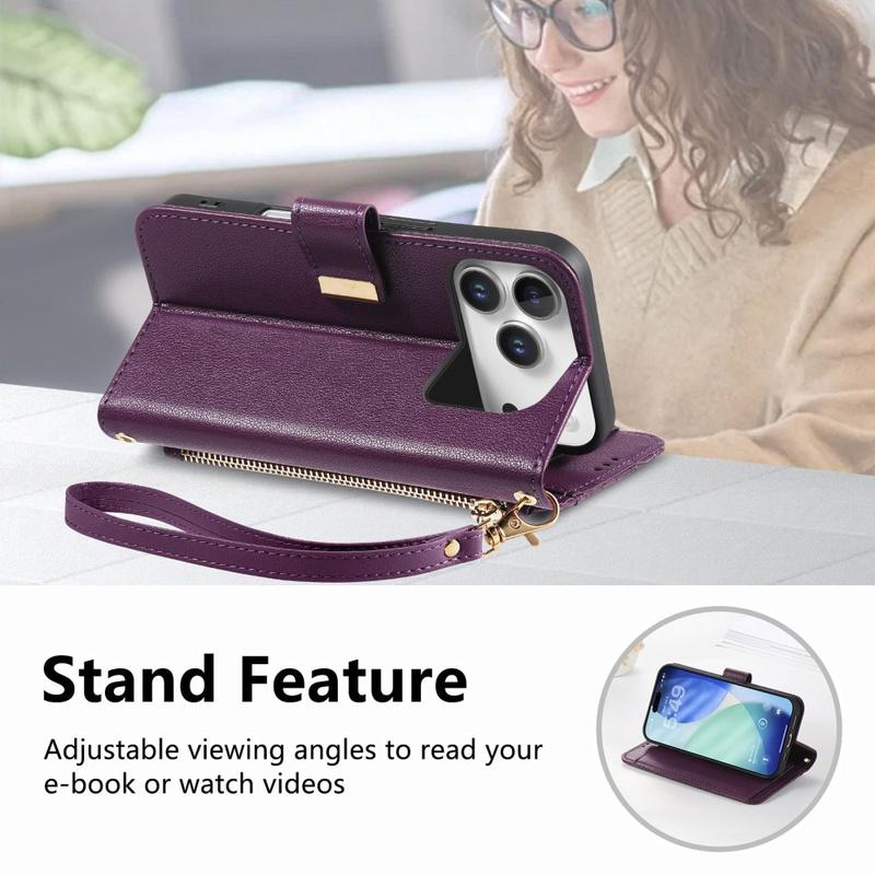 Hold orden på det viktigste samtidig som du gir din iPhone 17 Pro Max et elegant utseende med dette lommeboketuiet med bladmønster. Designet med flere kortplasser, en sikker glidelåslomme og en avtakbar håndleddsstropp, er det den perfekte blandingen av praktisk funksjonalitet og stil. Det er laget av slitesterk TPU og polyuretan, og gir pålitelig beskyttelse samtidig som det fungerer som en fasjonabel alt-i-ett-lommebok.