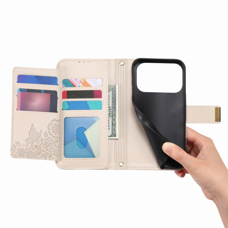 I motsetning til vanlige iPhone 17 Pro Max-etuier kombinerer dette alt-i-ett-etuiet beskyttelse, organisering og eleganse. Blomstertrykket gir det en stilig kant, mens glidelåslommen og håndleddsstroppen gir uovertruffen bekvemmelighet i hverdagen og på reise.