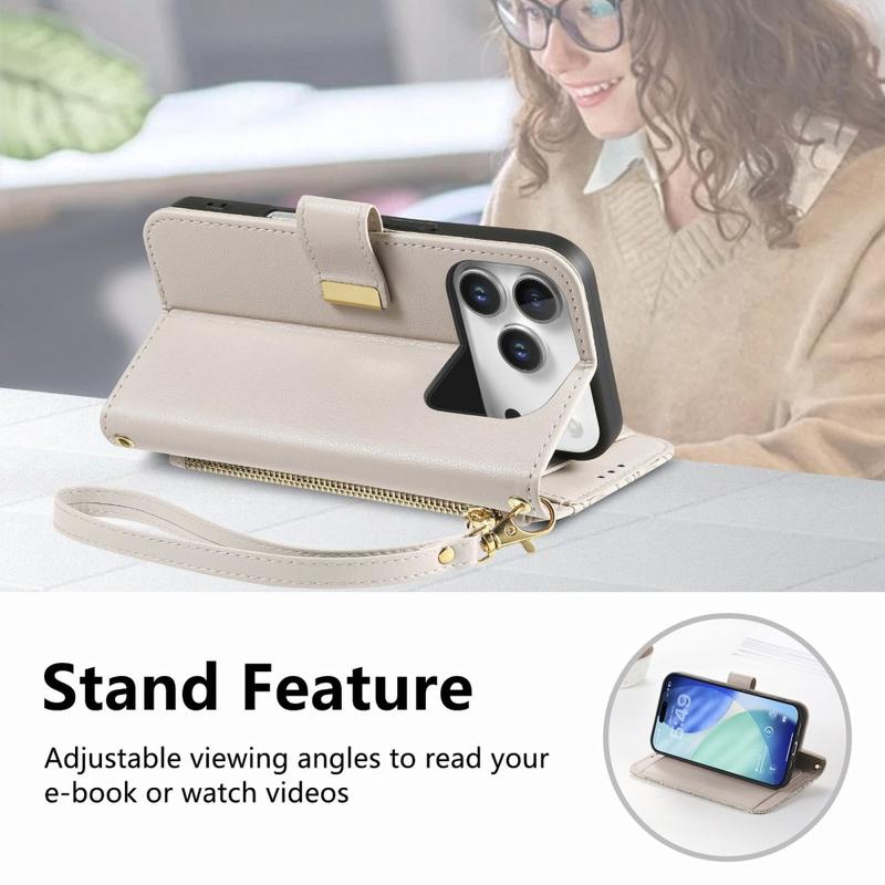 Hold orden på det viktigste samtidig som du gir din iPhone 17 Pro Max et elegant utseende med dette lommeboketuiet med bladmønster. Designet med flere kortplasser, en sikker glidelåslomme og en avtakbar håndleddsstropp, er det den perfekte blandingen av praktisk funksjonalitet og stil. Det er laget av slitesterk TPU og polyuretan, og gir pålitelig beskyttelse samtidig som det fungerer som en fasjonabel alt-i-ett-lommebok.