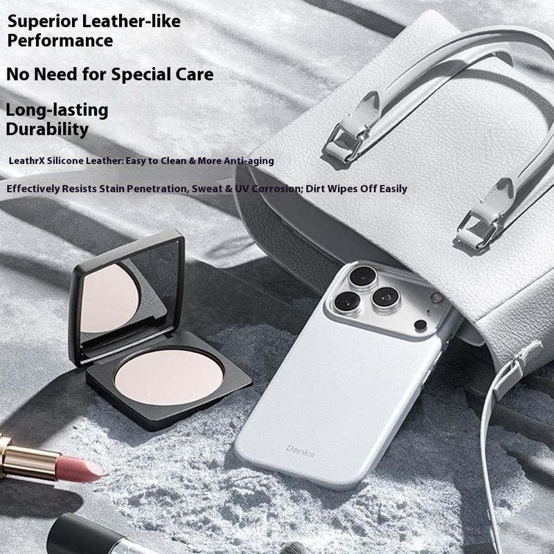 Beskytt telefonen din i førsteklasses stil med BENKS Q2 MagSafe-etuiet til iPhone 17 Pro Max. Etuiet er laget av mikrofiberskinn på utsiden, en stiv PC-ramme og en myk silikoninnside, og gir en luksuriøs følelse samtidig som det beskytter hele kroppen. Den innovative N52-magnetmatrisen med sjeldne jordarter forbedrer MagSafe-kompatibiliteten, noe som sikrer en sterk og pålitelig tilkobling for ladere og tilbehør. Etuiet er designet for å motstå fingeravtrykk og svette, og holder seg rent og elegant gjennom daglig bruk. Med sin slanke profil, presise passform og forbedrede grepstekstur balanserer BENKS Q2 perfekt mellom raffinement, komfort og holdbarhet.