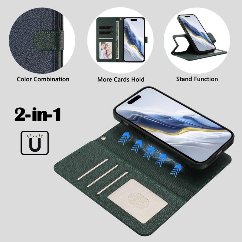 Nyt friheten med en avtakbar 2-i-1-lommebok. Den har følgende funksjoner: 2 kortplasser, 1 fotolomme og 1 kontantrom.