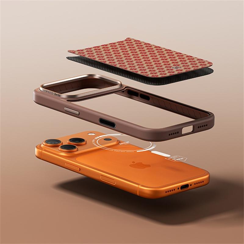 Etuiet er designet med en avansert støtdempende struktur som bidrar til å redusere støt fra utilsiktede fall og daglige slag. Kombinasjonen av aramidfiber, TPU og metall fordeler kraften effektivt, samtidig som dekselet er tynt og elegant.