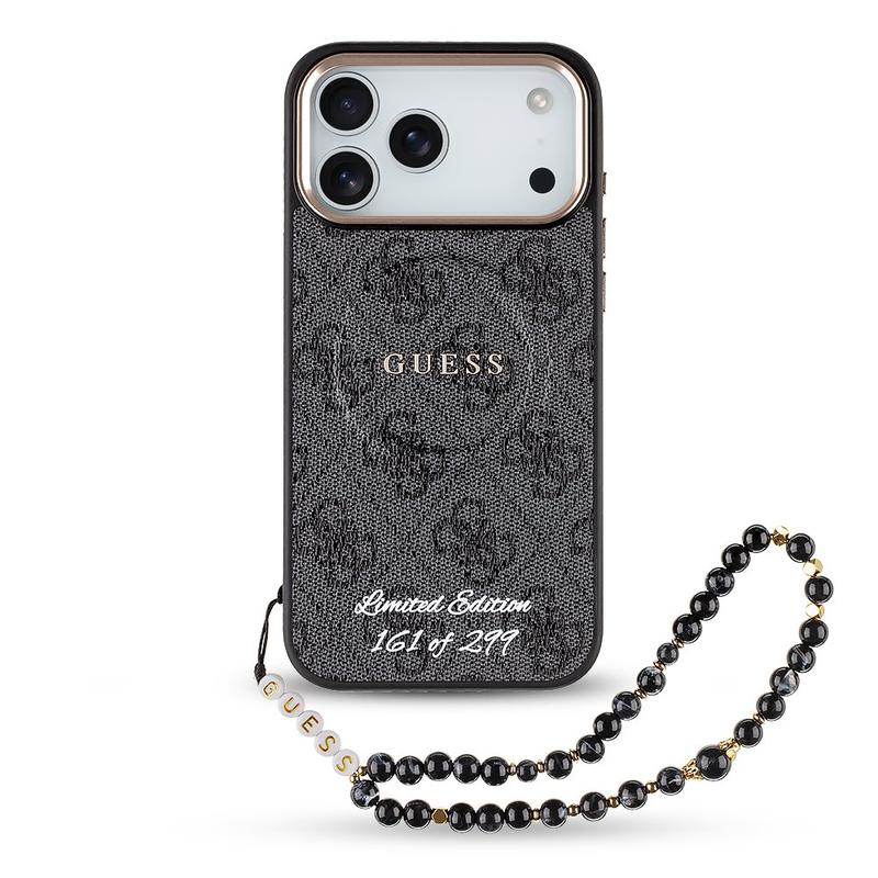 Guess 4G Strap MagSafe-kompatibelt deksel for iPhone 17 Pro Max - Limited Edition (299 stk.) Nummerert bakdeksel med perlebelagt håndleddsstropp