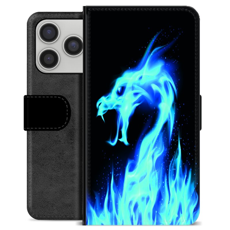 iPhone 17 Pro Premium Lommebok-deksel - Blå Flamme Drage