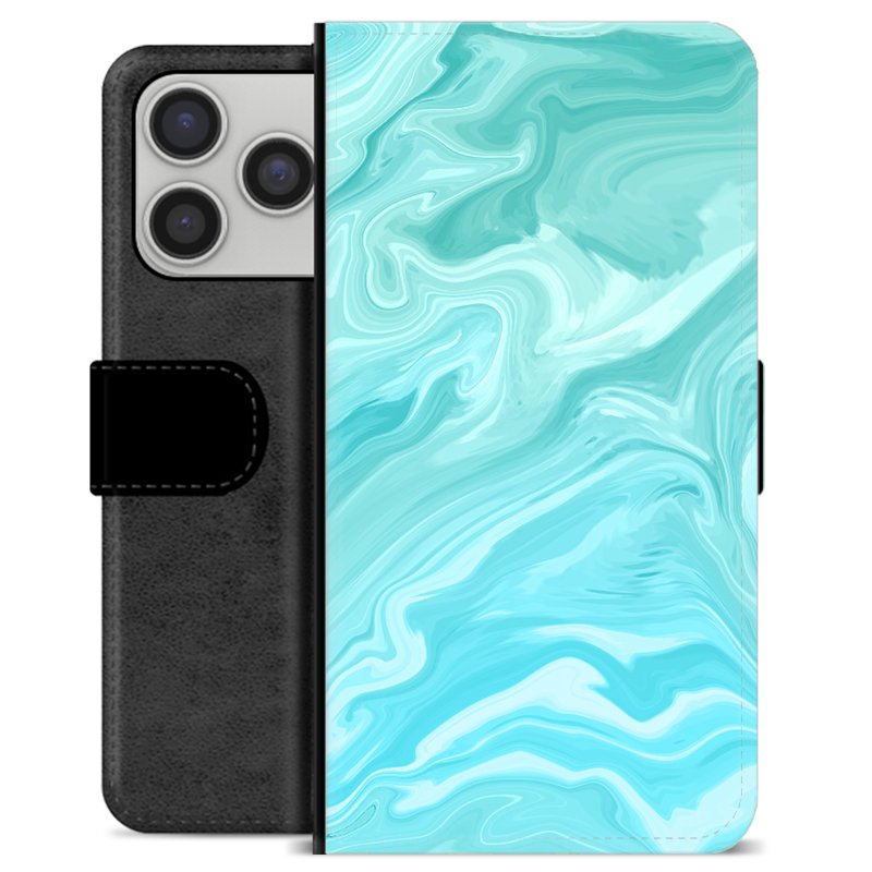 iPhone 17 Pro Premium Lommebok-deksel - Blå Marmor