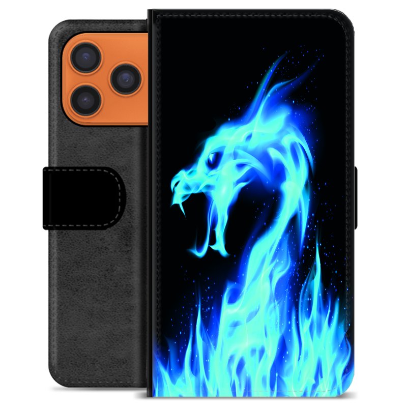 iPhone 17 Pro Max Premium Lommebok-deksel - Blå Flamme Drage