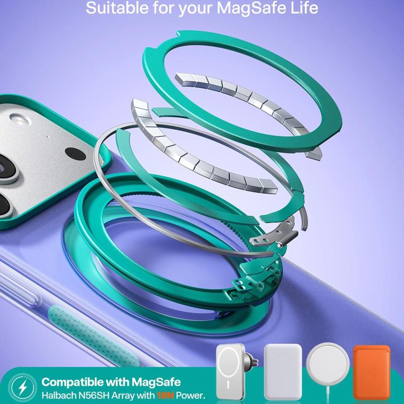 En viktig funksjon ved dette dekselet er den sterke magnetiske kompatibiliteten. Bygget med et Halbach N56SH-magnetfelt og en spesifisert sugekraft på 18 N, er det designet for sikker tilpasning til kompatibelt magnetisk tilbehør og ladere. Det integrerte 360-graders magnetiske stativet gir ekstra bekvemmelighet, slik at du kan plassere iPhone 17 Pro for håndfri visning under videosamtaler, streaming, lesing eller daglig multitasking.