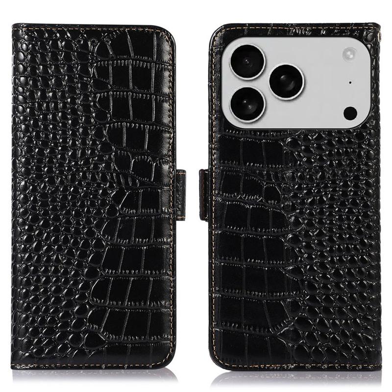 Crocodile Series Lommebok-deksel i Lær med RFID til iPhone 17 Pro