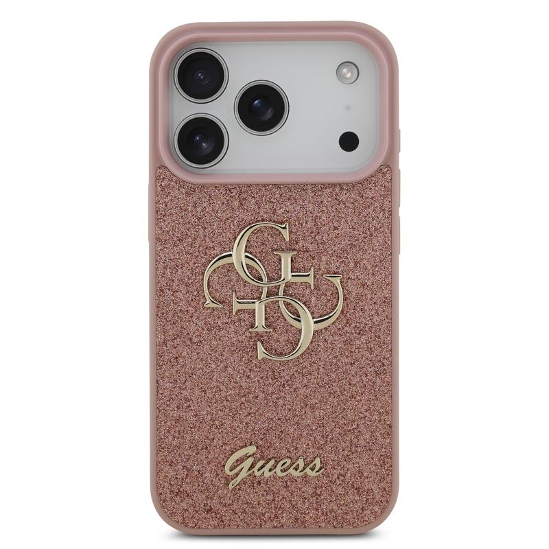 iPhone 17 Pro Guess Fixed Glitter 4G Metal Logo Deksel - Rosa