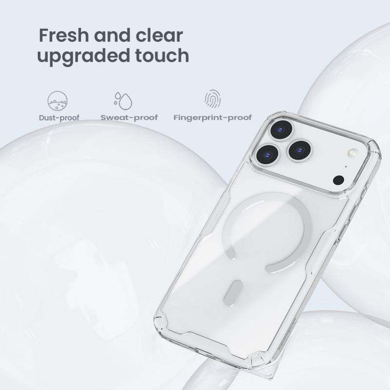 Nillkin Nature Pro Hybrid-deksel for iPhone 17 Pro Max - MagSafe-kompatibel, ultraklar TPU + PC med opphøyd kant for kamera- og skjermbeskyttelse