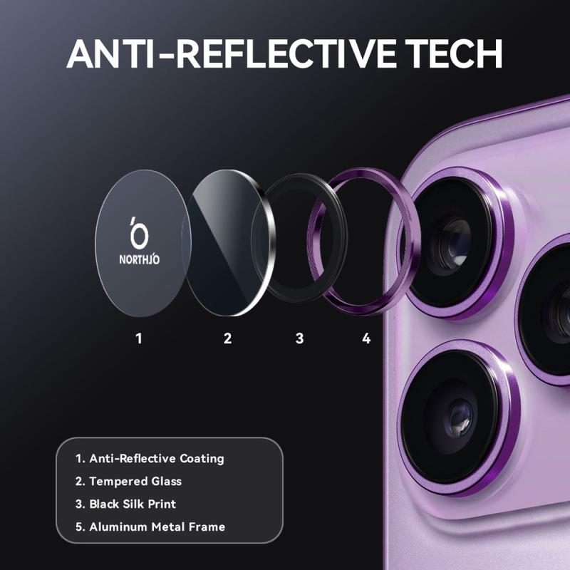 Oppgrader din iPhone 17 Pro, iPhone 17 Pro Max med Northjo kameralinsebeskytter. Med en aluminiumsring med CD-nerver gir den en elegant, moderne touch til din iPhone 17 Pro, iPhone 17 Pro Max, samtidig som den gir robust beskyttelse. Det 9H herdede glasset beskytter mot riper, støt og støv, og sørger for at kameralinsen forblir krystallklar. Med enkel, verktøyfri montering kan du forbedre holdbarheten og estetikken til din iPhone 17 Pro, iPhone 17 Pro Max på få sekunder.