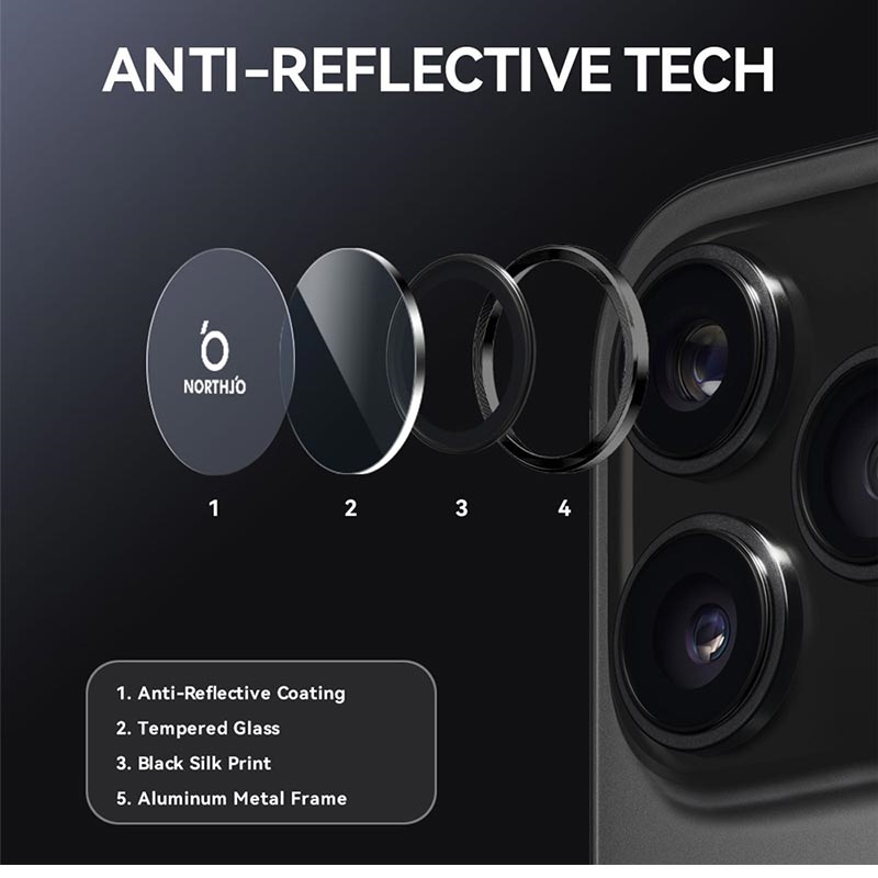 Oppgrader din iPhone 17 Pro, iPhone 17 Pro Max med Northjo kameralinsebeskytter. Med en aluminiumsring med CD-nerver gir den en elegant, moderne touch til din iPhone 17 Pro, iPhone 17 Pro Max, samtidig som den gir robust beskyttelse. Det 9H herdede glasset beskytter mot riper, støt og støv, og sørger for at kameralinsen forblir krystallklar. Med enkel, verktøyfri montering kan du forbedre holdbarheten og estetikken til din iPhone 17 Pro, iPhone 17 Pro Max på få sekunder.