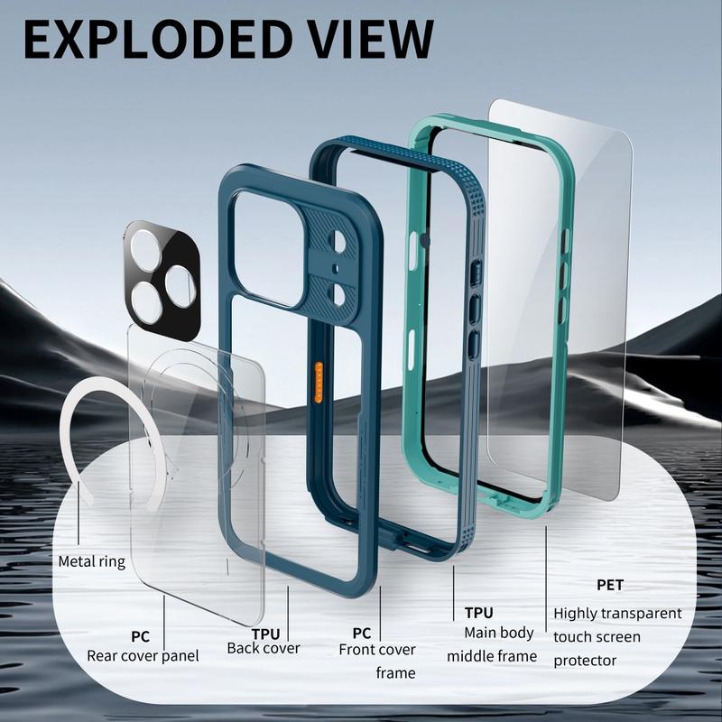 Beskytt din iPhone 17 Pro Max på undervannseventyr med Shellbox M Series IP68 Waterproof Case. Dette dykkerdekselet i metall er konstruert for holdbarhet og gir helkroppsbeskyttelse opp til 15 meter under vann, samtidig som det er MagSafe-kompatibelt for sømløs trådløs lading. Den robuste konstruksjonen sørger for at enheten din forblir sikker under ekstreme forhold, noe som gjør den ideell for dykkere, snorklere og friluftsentusiaster.