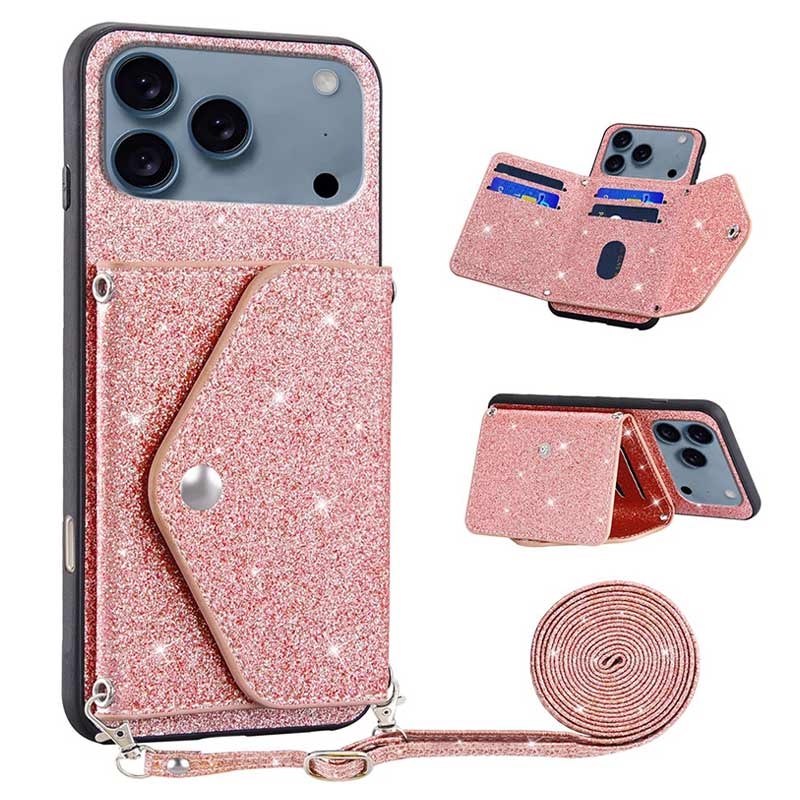 Dekselet av førsteklasses kvalitet fra Stardust-serien er det riktige valget for å beskytte din iPhone 17 Pro Max fra potensiell skade. Den har en kortholder på baksiden med en trykknapp som er perfekt for å oppbevare de viktige kortene dine og holde dem trygge. En skinnende glitteroverflate legger til et snev av glamour til telefonen din. I tillegg kommer dekselet med en 150 cm skulderstropp, slik at du kan bære din iPhone 17 Pro Max med deg uansett hvor du går.