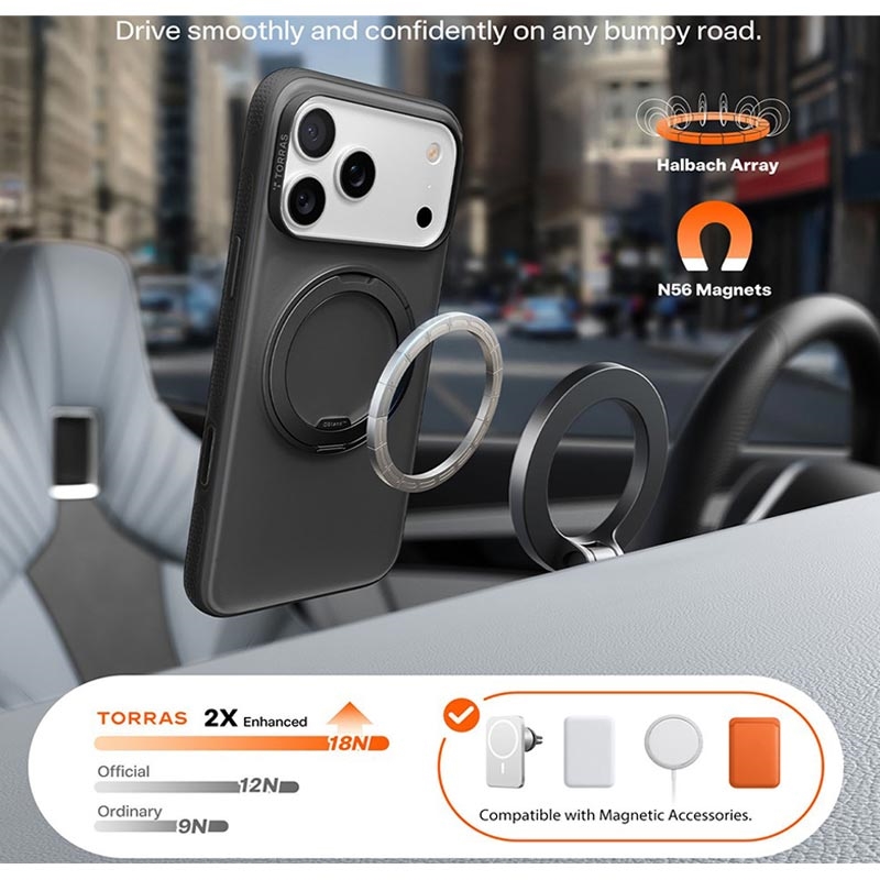 Gjør iPhone 17 Pro Max-opplevelsen din enda bedre med TORRAS O-Fitness Series-etuiet, som kombinerer robust beskyttelse, innovative funksjoner og elegant design for å oppfylle kravene til moderne smarttelefonbrukere.