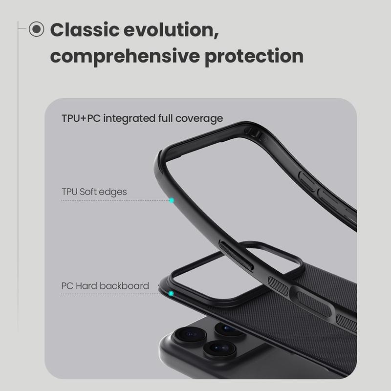 Nillkin designet den nye, kraftigere Pro-versjonen av Super Frosted Shield-dekselet til din dyrebare iPhone 17 Pro. Det gir ultimate fallbeskyttelse takket være dual-lags design - PC-baksiden med TPU-ramme.