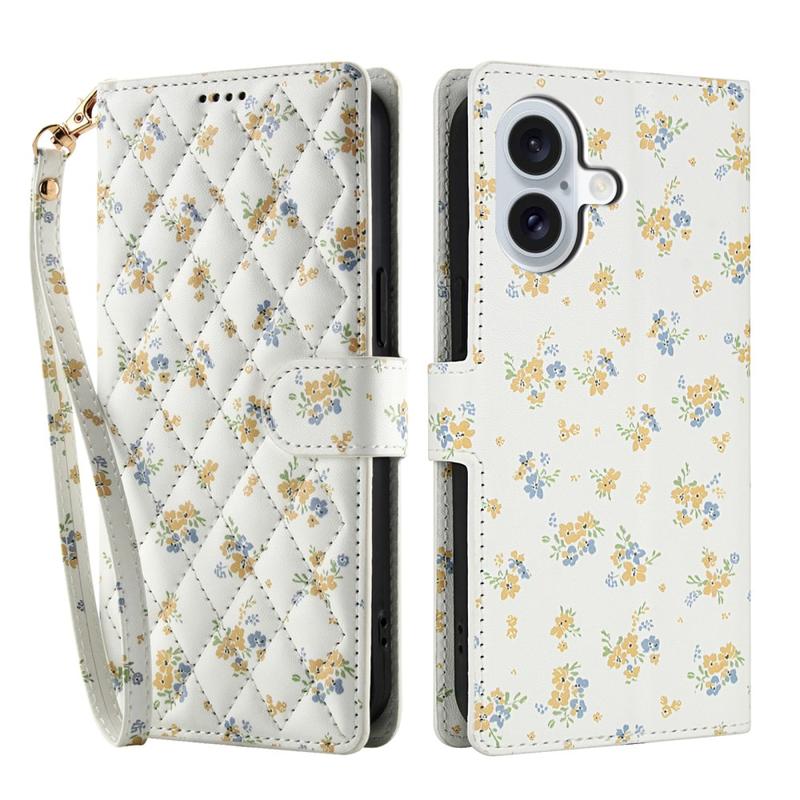 Rombisk blomsterlommebok-etui for iPhone 17 - med stropp og kortspor