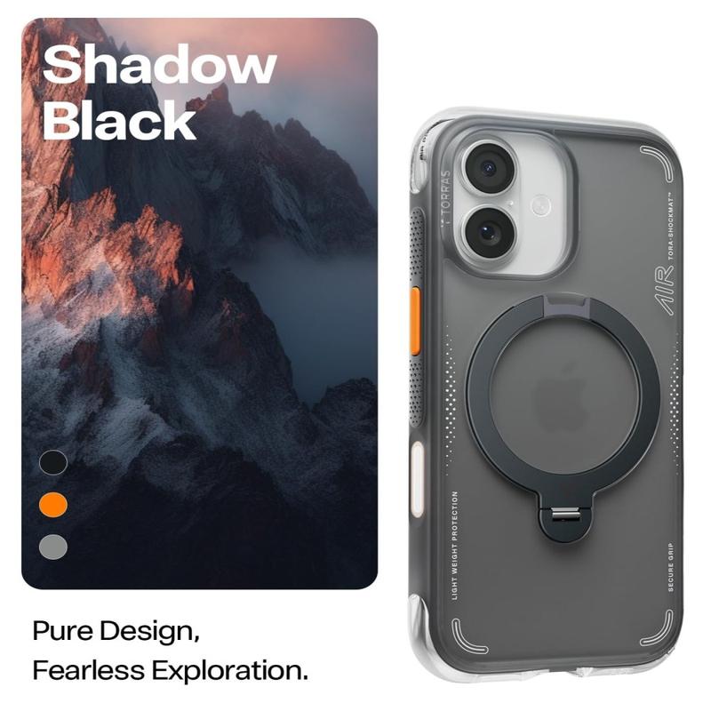 Torras Ostand Q3 Air MagSafe-etui for iPhone 17 kombinerer moderne estetikk med avansert beskyttelse. Det er laget av TPU- og PC-materialer av høy kvalitet, og gir en slank, stilig profil samtidig som det gir et sikkert og komfortabelt grep.