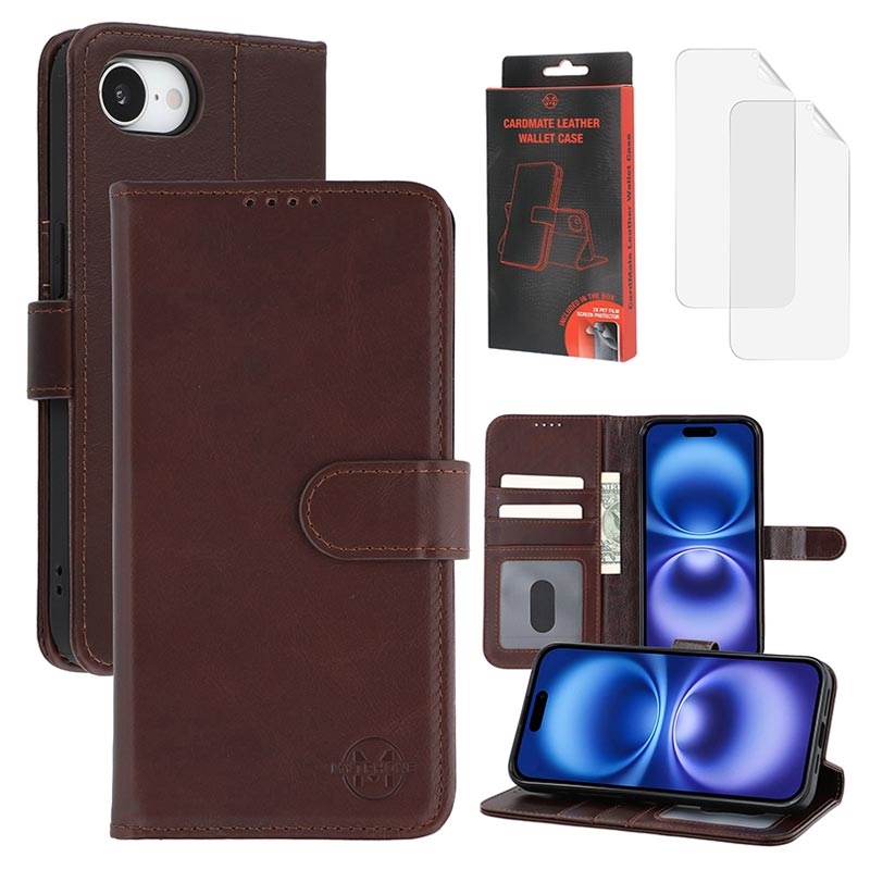 MyTPhone CardMate Premium lommebokveske i lær for iPhone 17e - stativfunksjon, kortholder, støtte for trådløs lading, 2x skjermbeskytter