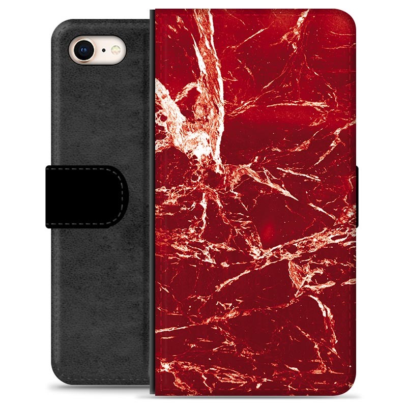 iPhone 7/8/SE (2020)/SE (2022) Premium Lommebok-deksel - Rød Marmor
