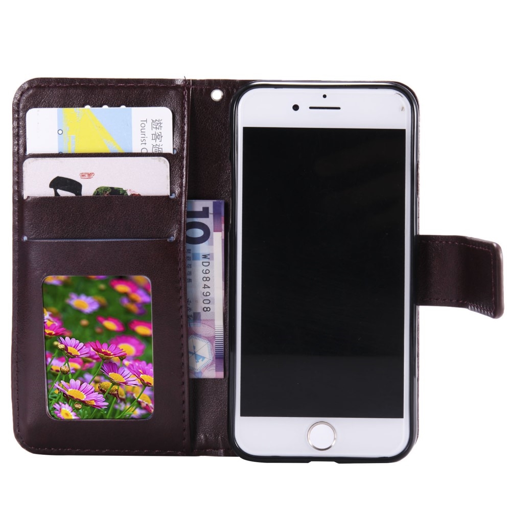 Den unike lommeboken beskytter iPhone 7, iPhone 8, iPhone SE (2020), iPhone SE (2022) mot riper og støt i hverdagen, og fungerer også som et stativ for video. Lommeboken har et innvendig rom for kort og en større lomme for kontanter, slik at du kan lagre alle verdisakene dine på ett sted.