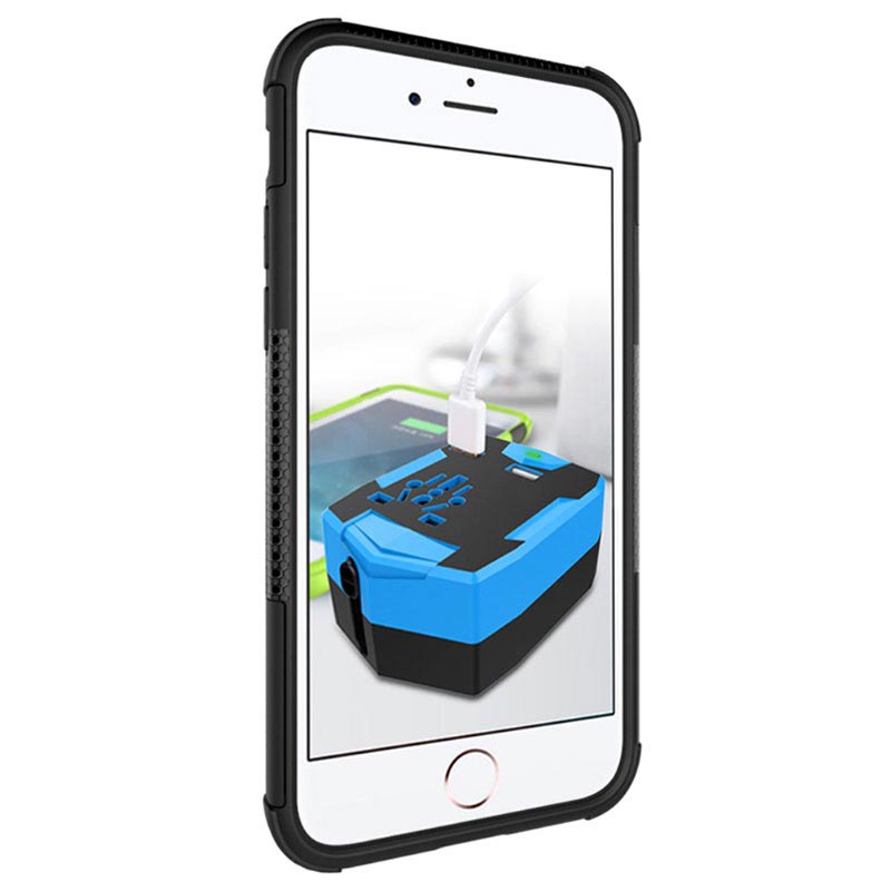 Antiskli Hybrid-dekselet til iPhone 7, iPhone 8, iPhone SE (2020), iPhone SE (2022) har en slank profil, men gir en utmerket beskyttelse. Det karakteristiske mønsteret bedrer grepet og reduserer sjansene for å miste telefonen. Dette hybride dekselet har også et stativ som fastholder enheten din i en perfekt visningsposisjon.
