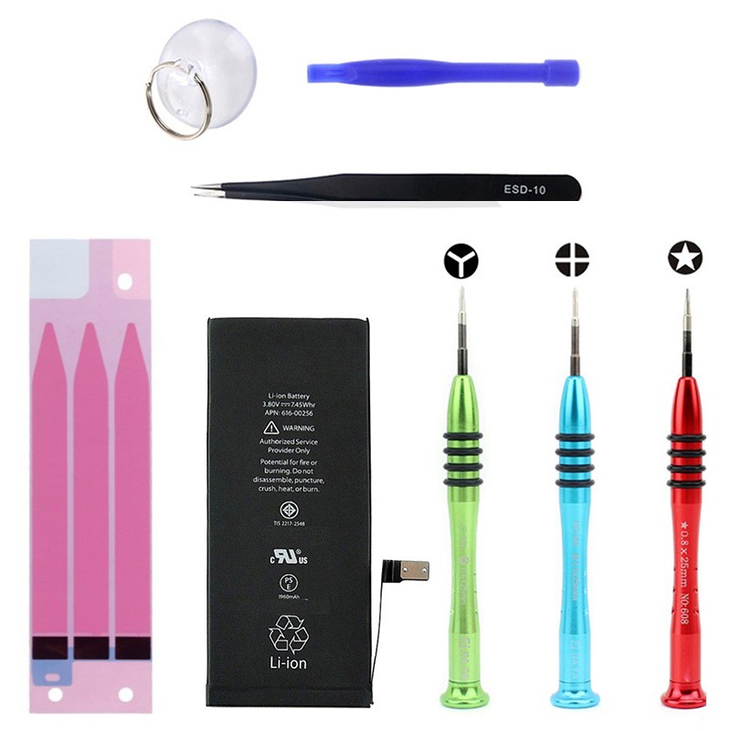 - Verktøysett av høy kvalitet for reparasjon og utskifting av ditt iPhone 7-batteri