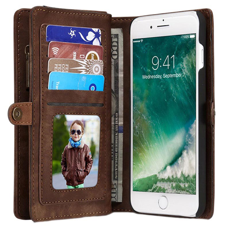 Dette Caseme 2-i-1 lommebok-dekselet til iPhone 7 Plus, iPhone 8 Plus gir muligheten til å ta med deg enheten din i to svært praktiske deksler. Caseme 2-i-1 dekselet er en kombinasjon av et multifunksjonelt lommebok-deksel og et avtakbart, magnetisk deksel som kan klikkes på.