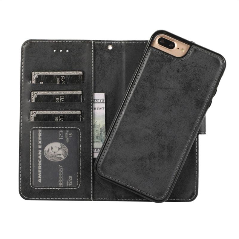 iPhone 7 Plus/8 Plus Vintage 2-i-1 lommeboketui med avtakbart deksel - svart