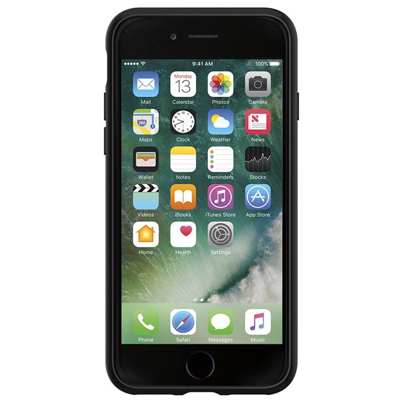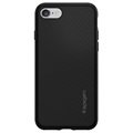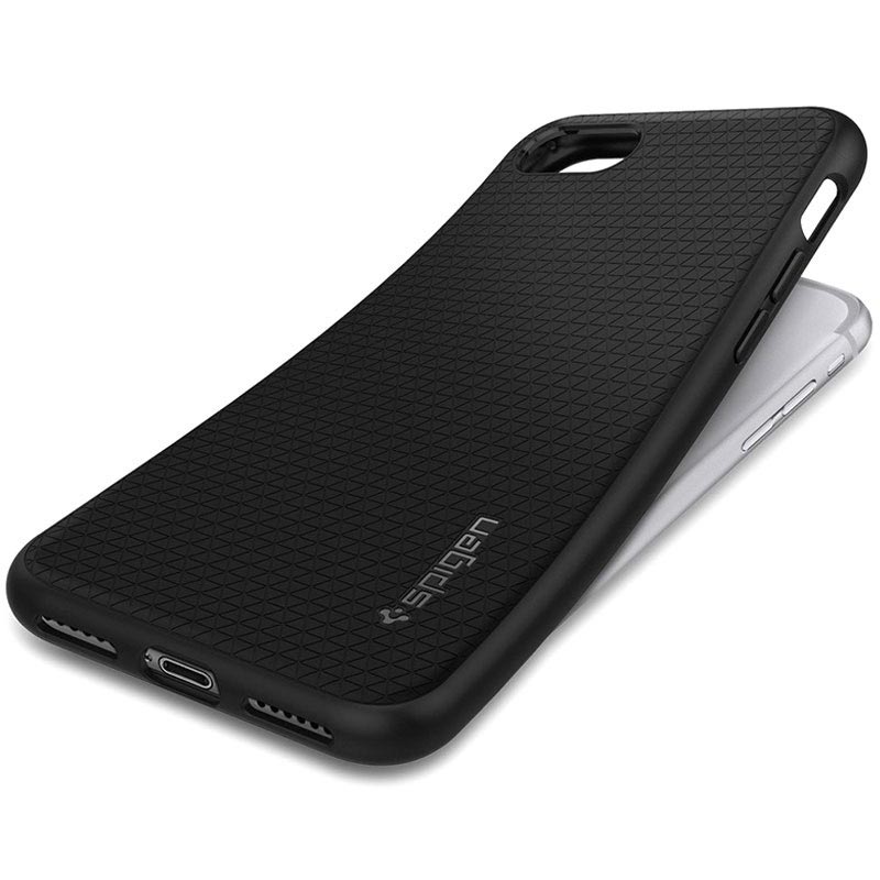 Spigen Liquid Armor-dekselet i termoplastisk polyuretan viser frem iPhone 7, iPhone 8, iPhone SE (2020), iPhone SE (2022) sin originale design og samtidig verner den mot hverdagslige riper og støt. Det prikkete mønsteret gir et bedre grep og forhindrer dermed at telefonen glipper.