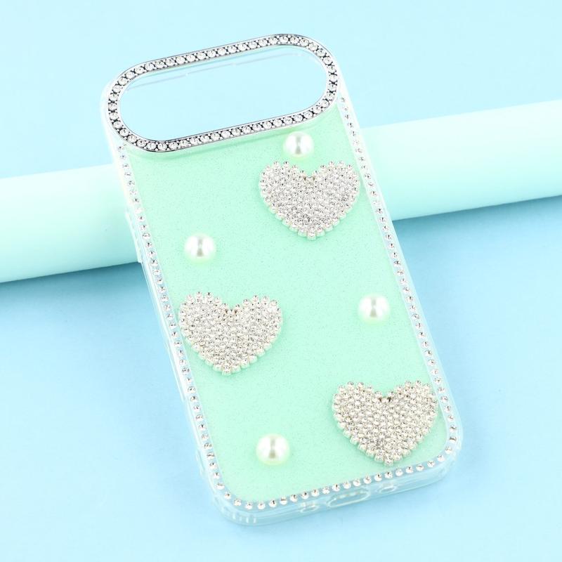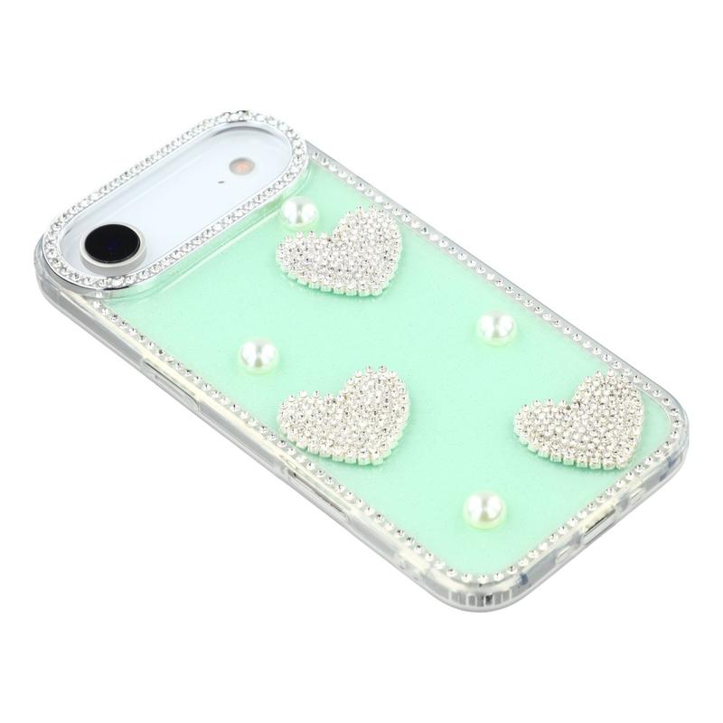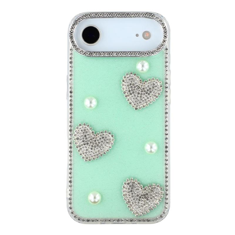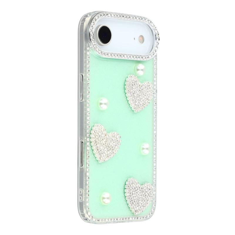 Dette iPhone Air-etuiet kombinerer pålitelig hverdagsbeskyttelse med glamorøs stil. Med glitrende rhinestones rundt kantene og glitrende perlehjertedekorasjoner på baksiden forvandler det din iPhone Air til et moteriktig tilbehør, samtidig som det beskytter den mot riper og støt.
