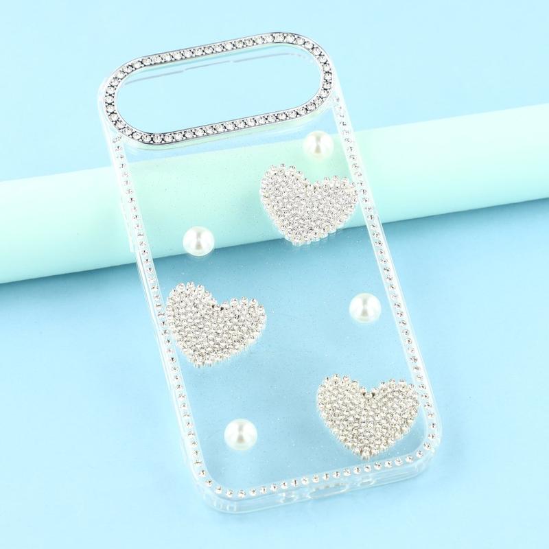 Dette iPhone Air-etuiet kombinerer pålitelig hverdagsbeskyttelse med glamorøs stil. Med glitrende rhinestones rundt kantene og glitrende perlehjertedekorasjoner på baksiden forvandler det din iPhone Air til et moteriktig tilbehør, samtidig som det beskytter den mot riper og støt.