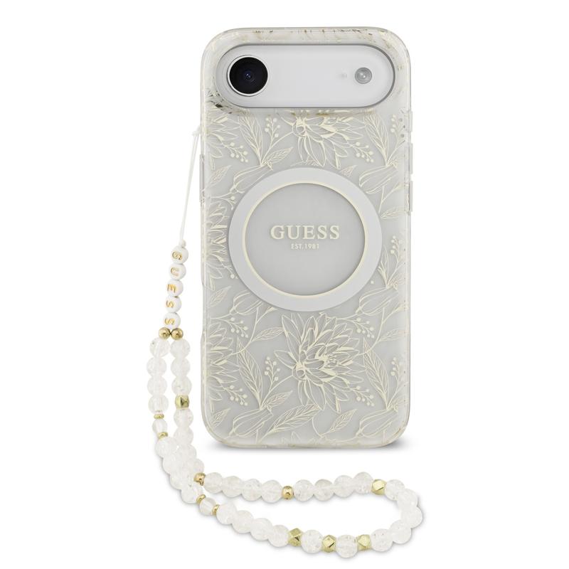 Guess IML Flowers Allover Electro-deksel med perlearmbånd for iPhone Air - MagSafe-kompatibel