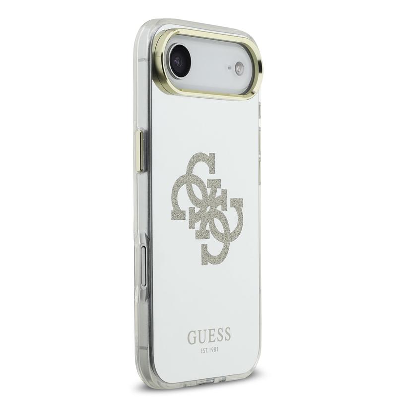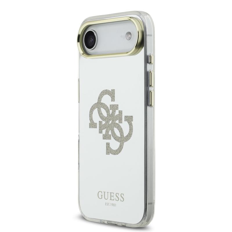 Guess Mirror 4G Glitter Logo MagSafe-etui med glitterlogo tilbyr luksuriøs motebranding kombinert med moderne funksjonalitet. Det er mer enn bare et beskyttende deksel - det er et førsteklasses tilbehør som gir stil, bekvemmelighet og MagSafe-kompatibilitet til din iPhone Air.