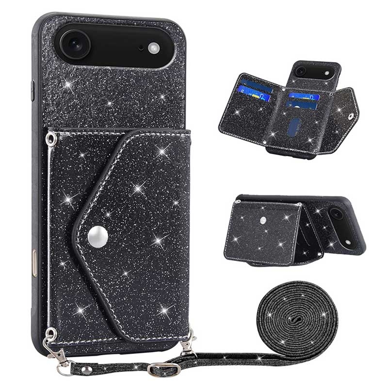 Dekselet av førsteklasses kvalitet fra Stardust-serien er det riktige valget for å beskytte din iPhone Air fra potensiell skade. Den har en kortholder på baksiden med en trykknapp som er perfekt for å oppbevare de viktige kortene dine og holde dem trygge. En skinnende glitteroverflate legger til et snev av glamour til telefonen din. I tillegg kommer dekselet med en 150 cm skulderstropp, slik at du kan bære din iPhone Air med deg uansett hvor du går.