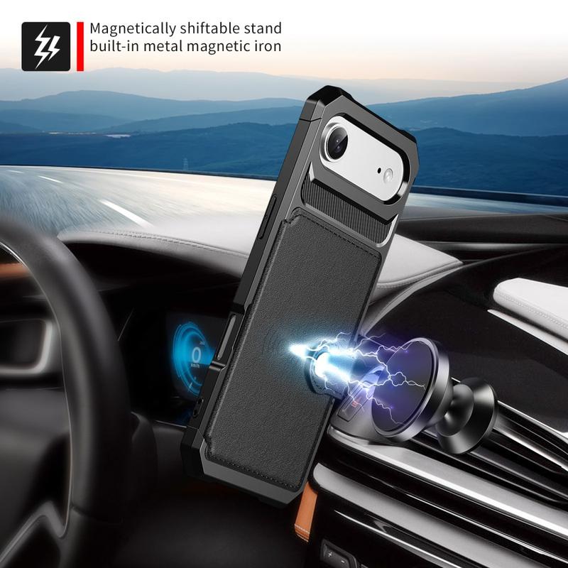 - Lommeboketuiet til iPhone Air har en sikker lukking med trykknapp, lommebokdesign og flere kortspor med kontantlomme.