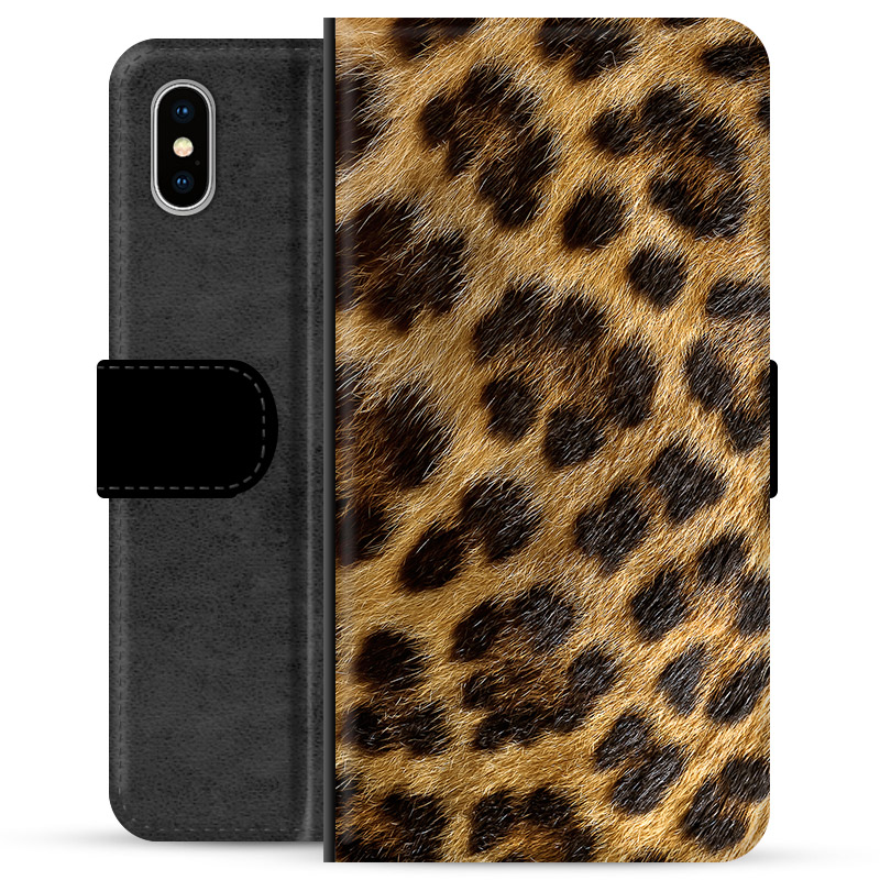 Med iPhone X / iPhone XS Premium Wallet Case - Leopard får du ikke bare et beskyttende etui, men også et stilfullt tilbehør som fremhever din personlige stil. Beskytt din iPhone med eleganse og funksjonalitet ved å velge dette fantastiske etuiet.