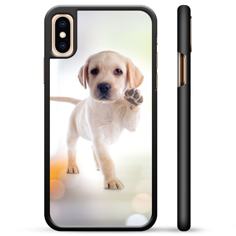 Dette er et beskyttelsesdeksel designet for iPhone X / iPhone XS. Dekselet har et sjarmerende motiv av en liten hundevalp som ser rett på betrakteren med sine store øyne. Hunden ser ut til å heve en av sine poter som om den berører glasset, noe som gir en søt og engasjerende effekt. Dekselet selv er laget med presise utskjæringer for kamera og porter, og gir full tilgang til telefonens funksjoner uten å fjerne dekselet. Det ser ut til å være robust og tilbyr god beskyttelse for telefonen samtidig som det tilfører en personlig touch. Kanterne på dekselet er farget i svart som gir en elegant ramme rundt det bedårende bildet av hundevalpen og kontrasterer godt med den høykvalitets trykket av bildet.