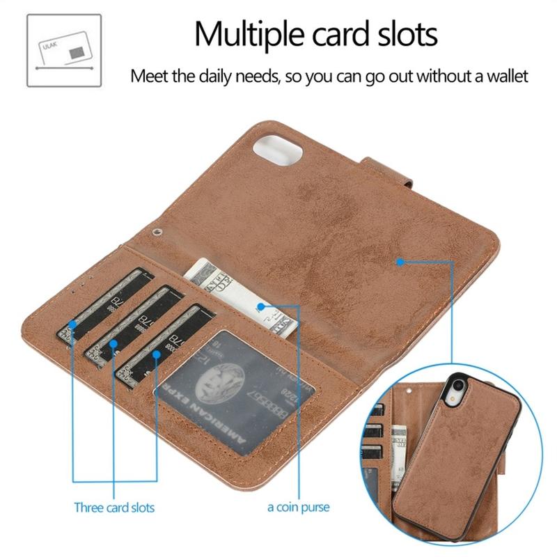 Vintage 2-i-1-lommeboketui med avtakbart magnetdeksel til iPhone XR