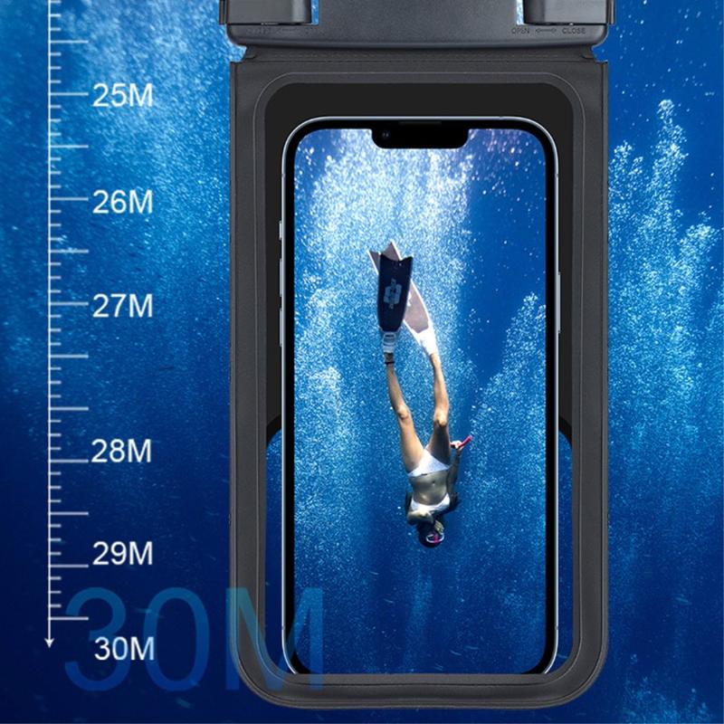 IPX8-klassifisert vanntett. Passer til alle smarttelefoner opp til under 9,5 tommer. Størrelse: 15,5 x 24,5 cm
