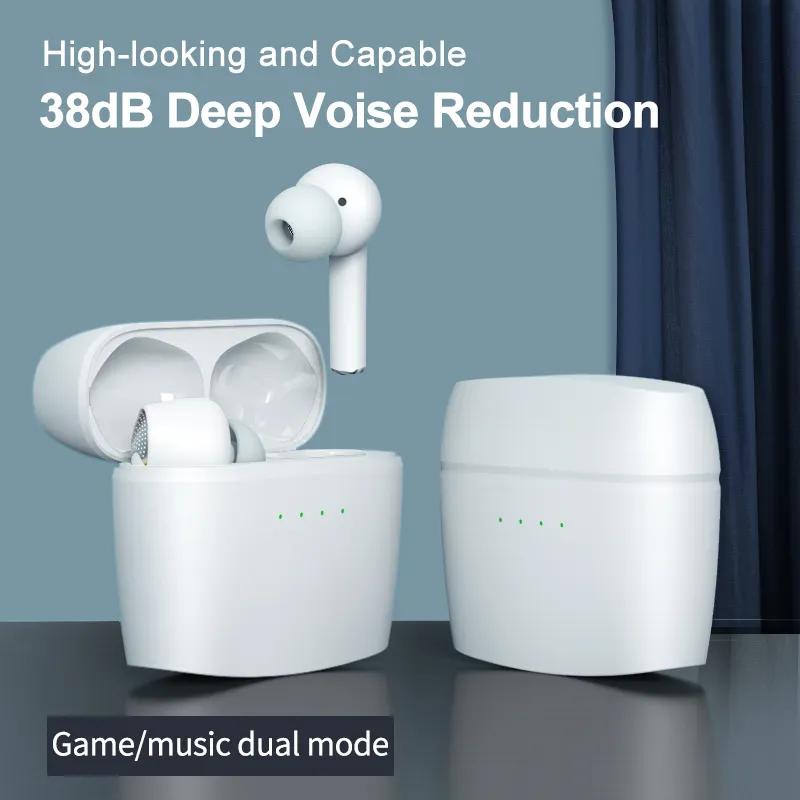 J8 Active Noise Reduction True Wireless-øretelefoner med Bluetooth, mikrofon og ladeetui