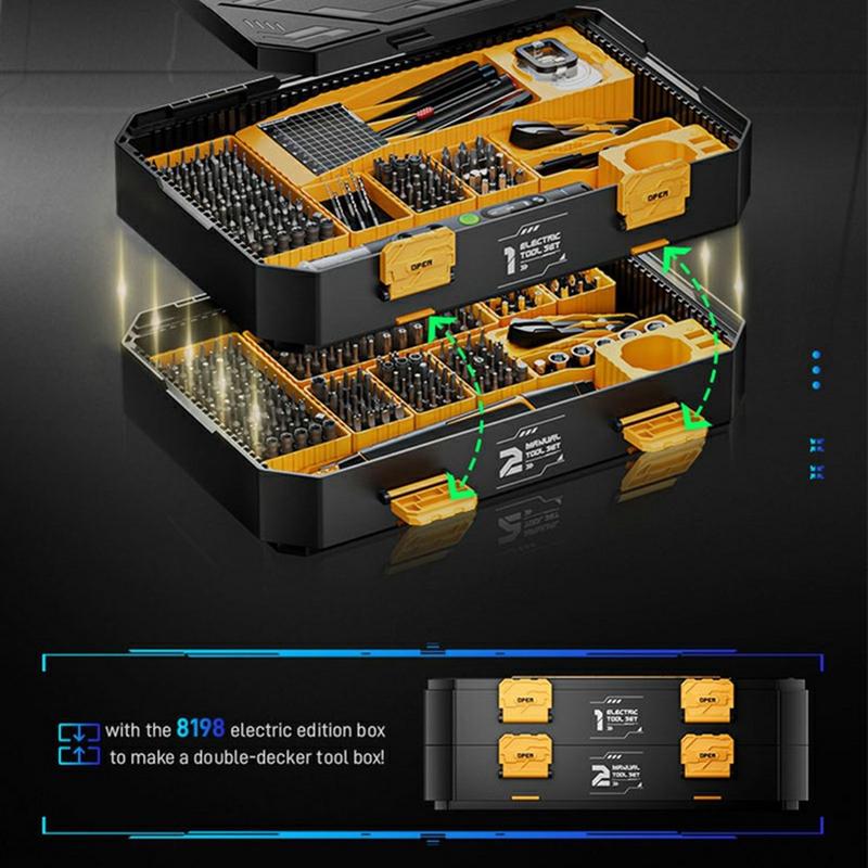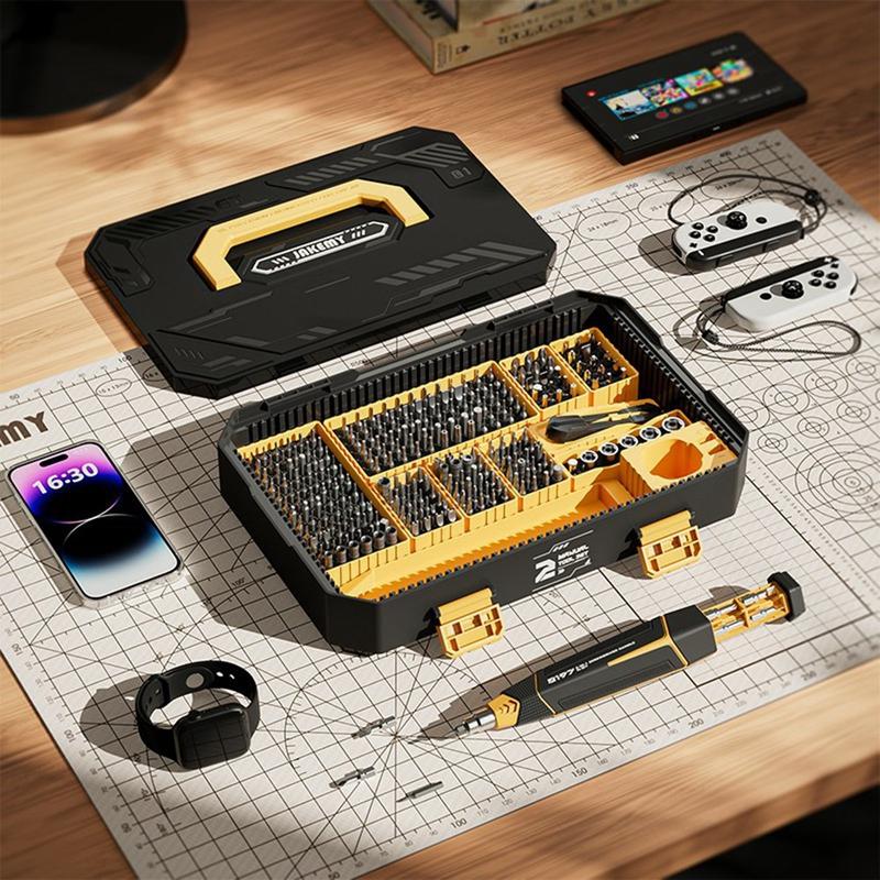 JM-8199 er mer enn bare et verktøysett - det er en komplett reparasjonsstasjon. Det modulære oppsettet, den profesjonelle skrutrekkeren og det store utvalget av verktøy gjør det egnet til alt fra enkle reparasjoner i hjemmet til detaljerte gjør-det-selv-prosjekter.