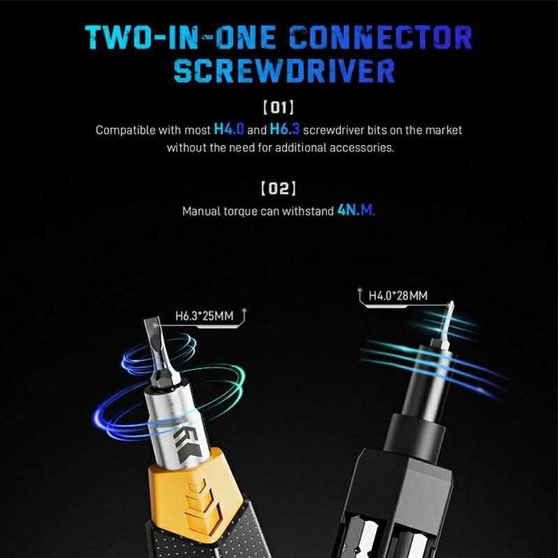 - 2-i-1-skrutrekker - Dual-purpose-kontakt kompatibel med H4.0- og H6.3-bits uten adaptere.